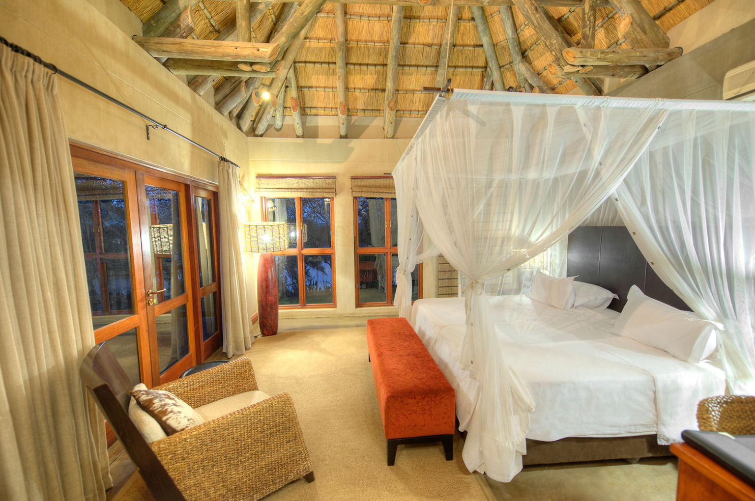Waar luxe en natuur samenkomen aan de oevers van de Kavango-rivier. Divava Okavango Resort & Spa, dat aan de oevers van de Okavango-rivier is gevestigd, heeft 20 luxe, ruime chalets met airconditioning en ruime terrassen die een ideale locatie bieden voor de prachtige natuurshow. Geniet van verfijnde gerechten, omringd door elegante stijl en luxe. U kunt er gamedrives doen, een boottocht maken naar de Popa Falls en begeleide excursies maken naar de lokale dorpen.